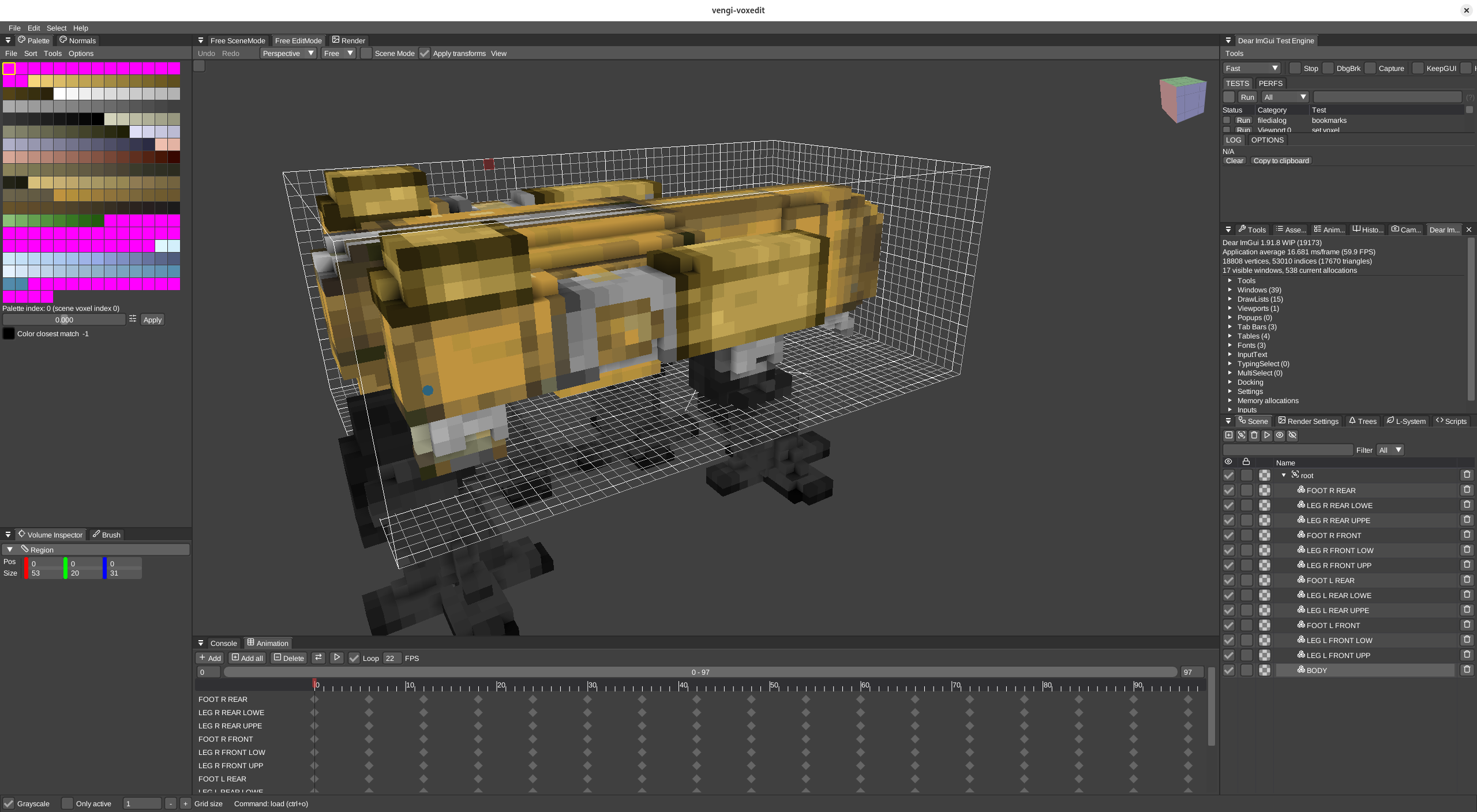This is a collection of voxel tools. It includes a voxel editor with animation support and loading/saving into a lot of voxel volume formats. There are other tools like e.g. a thumbnailer for your filemanager and a command line tool to convert or modify between several voxel formats.